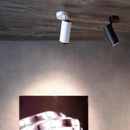 Прожекторите в коридора предлагат целенасочено осветление и максимална гъвкавост. Те могат да се завъртат, подравняват и концентрират върху определени зони, което е идеално за използване на светлината точно там, където е необходима. Независимо дали става въпрос за подчертаване на картини на стената, осветяване на скрин или за целенасочено осветяване на тъмни ъгли: прожекторите се адаптират към структурата на помещението и подпомагат функционалния и естетичен дизайн на осветлението.