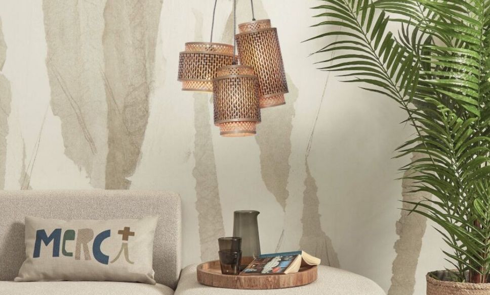 Материали от дърво до морски водораслиКогато топлата бяла светлина прониква през кръглите абажури, изработени от дърво, морска трева и бананови растителни влакна, атмосферата на добро настроение е перфектна. Бамбукът, ратанът, шистите и хартията също внасят естествен шик в интериора по креативен и устойчив начин. Задължително условие за допълнителен фактор на уют: източници на топла бяла светлина. Начинът, по който зърната на материалите се проследяват от светлината, е просто очарователен. Лампите с нажежаема жичка са най-добрият избор за грубо изтъкани абажури.