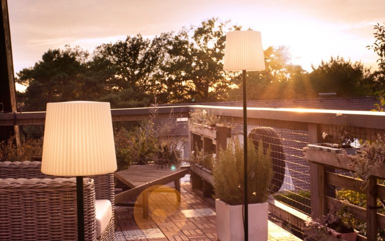 Без контакт или електрически кабел: няма проблем! Акумулаторните лампи са идеален начин за бързо и лесно разширяване на осветлението на терасата и за промяна на дизайна по всяко време. Осветителните тела с акумулаторни батерии се предлагат като подови, настолни и дори висящи лампи. Забележка: В зависимост от класа на защита IP не оставяйте захранваните с батерии светлини на дъжда през нощта, а просто ги заредете в помещението с помощта на USB кабела за следващата вечер на открито!