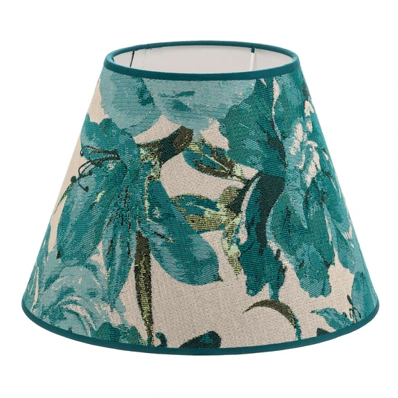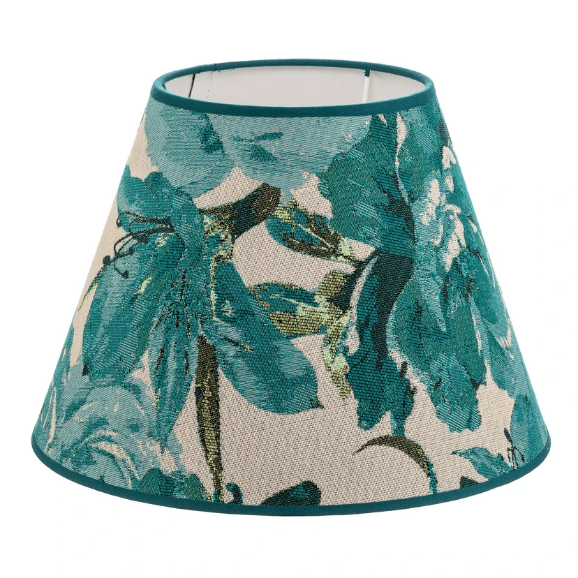 Абажурът София съчетава стилен дизайн с висококачествена изработка и придава елегантност на всяко помещение. Изработен от фин текстилен материал, той впечатлява с привлекателен флорален мотив в жив тюркоазен цвят. Комбинацията от материал и цвят осигурява хармонично разпределение на светлината и създава приятна атмосфера, която може да има както успокояващ, така и вдъхновяващ ефект.