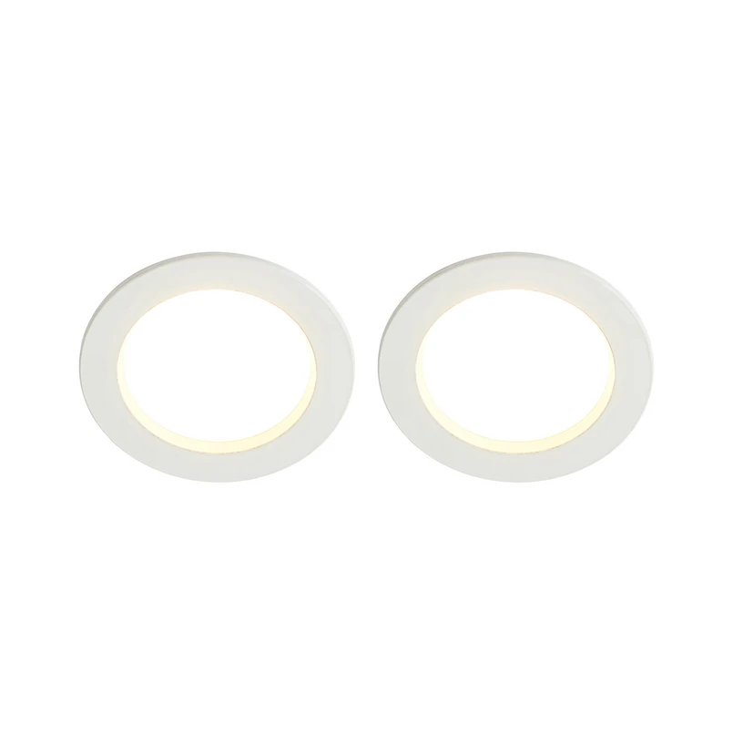 Кръгла LED лампа за вграждане Milaine с бяла пластмасова рамка и цвят на светлината, който се регулира преди монтажа Milaine е универсална LED лампа за вграждане с много предимства. Кръглият дизайн с бяла повърхност изглежда изключително семпъл и може да се използва почти навсякъде. Този дискретен прожектор за вграждане може да се използва както в търговска, така и в частна среда и може да се използва дори във влажни помещения благодарение на степента си на защита IP44. Цветът на светлината може да се настройва на едно от трите нива преди вграждането в тавана, тъй като на корпуса на лампата за вграждане има DIP превключвател. С ъгъл на излъчване от 100° светлината се разпространява доста широко, така че Milaine може да се използва и за осветяване на по-голяма площ. Съществува практична възможност за проходно окабеляване за свързване на няколко осветителни тела от този тип - SDCM <; 5 - UGR <; 25 - осветителното тяло се доставя в практичен комплект от 2