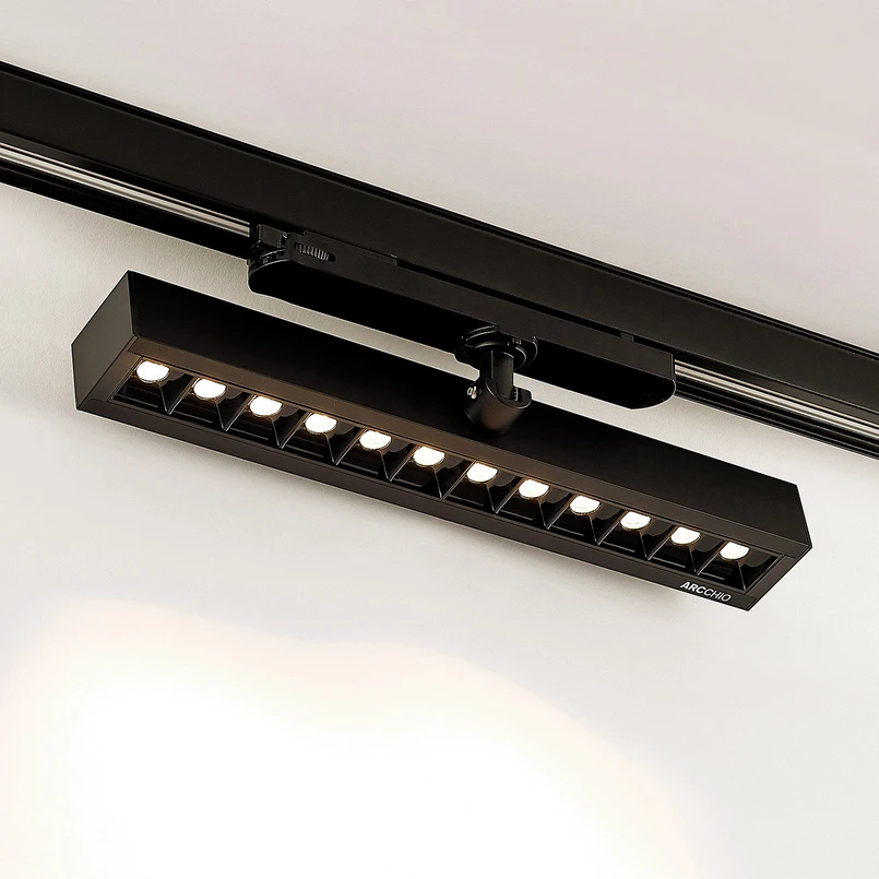 Черен, въртящ се прожектор Millay LED за писта със светлина без отблясъци и трептене, UGR < 15 Millay е LED прожектор, предназначен за използване с 3-фазна система за писта. Осветителното тяло е идеално за използване в търговска среда, например като осветление на магазин или в офис, тъй като прожекторът може да предложи множество предимства. Той произвежда светлина без отблясъци и следователно много приятна, осветлението също така не трепти и прожекторът може да се завърта, за да се регулира светлината индивидуално и да се адаптира към изискванията на място. Както черната повърхност, така и цялостният дизайн изглеждат много модерни. Светлината е ярка и ефективна благодарение на съвременната светодиодна технология - за 3-фазен релсов път - без трептене - без отблясъци - UGR < 15 - SDCM < 4 - въртящ се