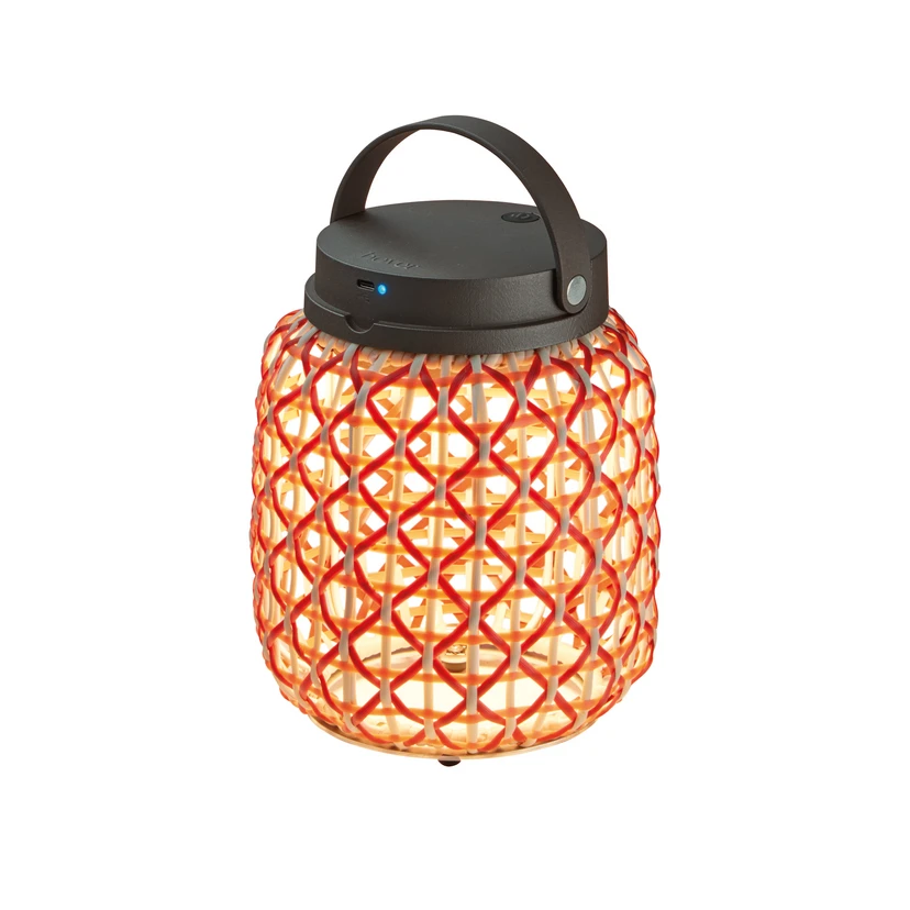 Акумулаторна настолна лампа Nans M/21/R за вътрешна употреба Настолната лампа Nans е част от серия лампи, проектирани от Джоана Бовер, основателката на едноименната компания в Барселона. Нейните проекти на осветителни тела отразяват лекотата на средиземноморския начин на живот и предават едно много специално отношение към живота. Nans има акумулаторна батерия и може да се зарежда с помощта на USB кабела, включен в комплекта, и сменяемия адаптер. Времето за зареждане е 12 часа. Светлината може да се затъмнява на три нива: 100% (продължителност на осветлението 8 ч.), 66% (продължителност на осветлението 12 ч.), 33% (продължителност на осветлението 24 ч.).