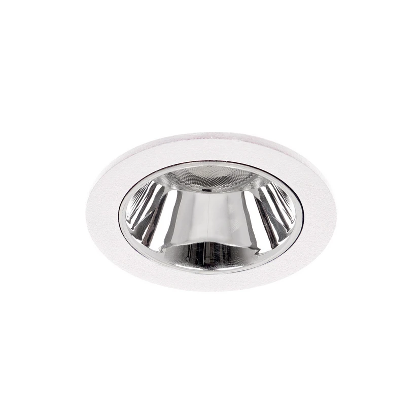 Apollo Micro LED прожектор за вграждане, гладък рефлектор, кръг Малкият кръгъл LED прожектор за вграждане Apollo Micro е оборудван с монтажни пружини и следователно може да се монтира на тавана без инструменти. Алуминиевият прожектор е оборудван със сребрист, гладък рефлектор с ротационно симетрично разпределение на светлината с тесен и широк лъч, а капакът е изработен от прозрачна пластмаса, за да се осигури оптимално разпределение на светлината. Светодиодният прожектор за вграждане Apollo Micro изпълнява широк спектър от задачи по осветяване и е перфектният инструмент за осветление за електротехници, проектанти и дизайнери, независимо дали става въпрос за търговски площи или частни жилищни пространства. Осветителното тяло за вграждане отговаря на всички стандарти и се характеризира с висока системна ефективност - общ индекс на цветопредаване CRI > 90 - експлоатационен живот L80/B10 при 25 °C: 50 000 h, експлоатационен живот L80/B50 при 25 °C: 50 000 h - материал на корпуса: алуминий / стъкло / пластмаса - допустима температура на околната среда (ta): -20 °C - +25 °C - с електронна контролна апаратура, превключваема, без възможност за димиране
