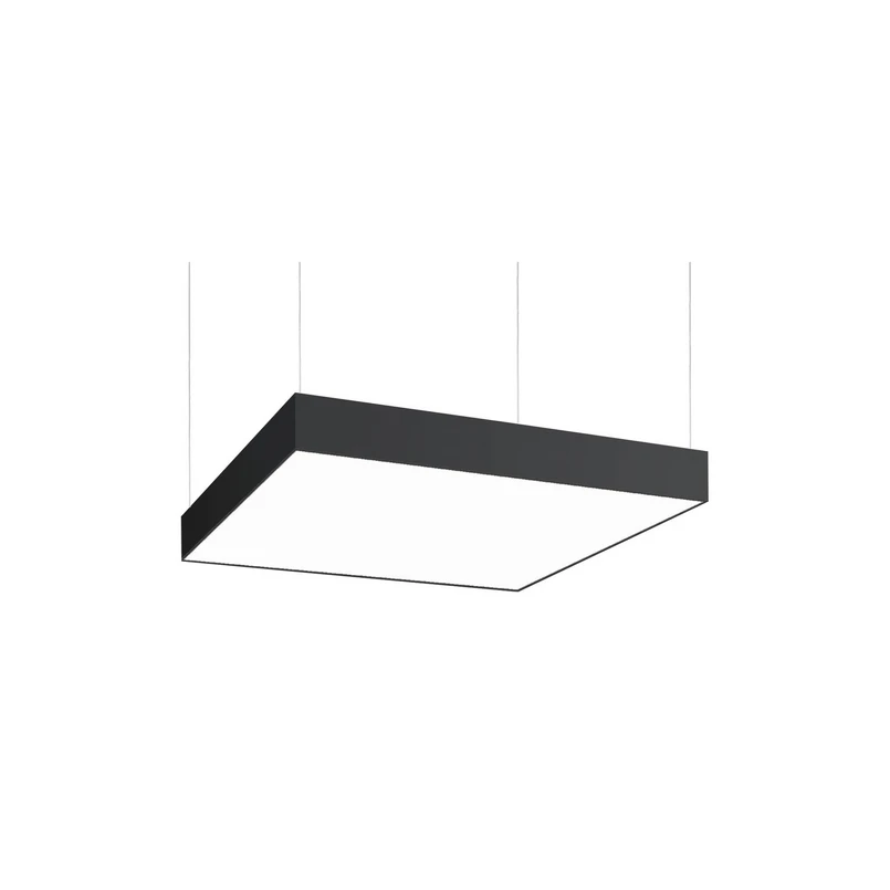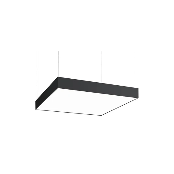 Квадратна LED висяща лампа Biro с електронно управление, димируема по DALI Biro Circle е квадратна LED висяща лампа с плосък алуминиев абажур, затворен в долната си част с пластмасов капак в опалово бяло. Абажурът е окачен от тавана на четири стоманени въжета, което му придава почти плаващ вид и прави окачването променливо. Висящото осветително тяло е оборудвано с електронна, контролирана от DALI и димируема контролна апаратура. То е идеално за осветяване на офиси или заседателни зали - с ротационно симетрично, тясно-широкообхватно светлоразпределение - общ индекс на цветопредаване CRI > 80 - материал на корпуса: алуминий / стомана / пластмаса - допустима температура на околната среда (ta): -20 °C - +25 °C - с електронна контролна апаратура, димируема по DALI