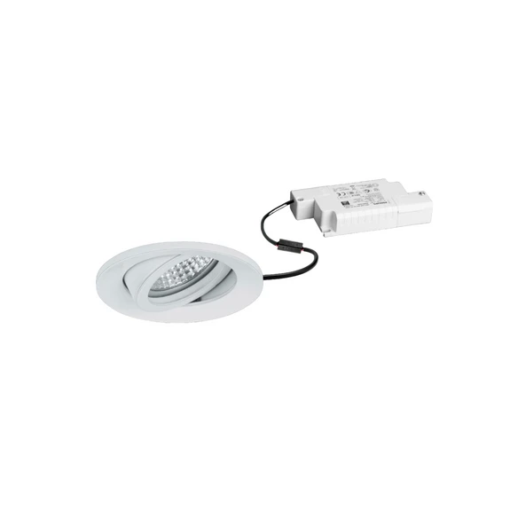 Светодиоден прожектор Berrie-R за вграждане с устройство за димиране Кръглият светодиоден прожектор за вграждане, изработен от лят алуминий и снабден с прозрачен стъклен капак, може да се завърта на 20°, така че светлината да се насочва в желаната посока. Прожекторът за вграждане е снабден със сребърен рефлектор с висок гланц и излъчва светлина с ротационно симетрично, тясно-широко светлинно разпределение под ъгъл 38°. Доставя се като готов за свързване комплект с електронно устройство за управление с възможност за димиране с фазов димер - монтаж на тавана без инструменти с помощта на монтажни пружини - вкл. електронно устройство за управление с възможност за димиране с фазов димер - прожекторът за вграждане не трябва да се покрива с топлоизолационен материал