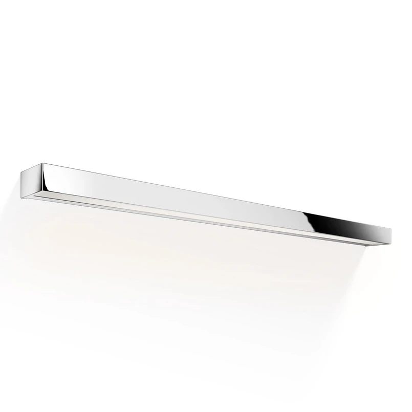 Класическо осветително тяло за бани и всекидневни - стенна LED лампа Box N Box N е правоъгълна стенна LED лампа, изработена от метал с хромирано покритие. Два разсейвателя от матовобял акрил позволяват на топлата бяла светлина да се излъчва нагоре и надолу и едновременно с това да създава неслепящи се акценти върху стената. Благодарение на степента си на защита IP44 Box N е защитена от пръски вода и изглежда особено добре над огледало. LED лампата за стена Box N може да се регулира в комбинация с фазов димер за задния край. Тя може да се използва самостоятелно или в комбинация с други лампи Box N за създаване на атмосфера на осветление.