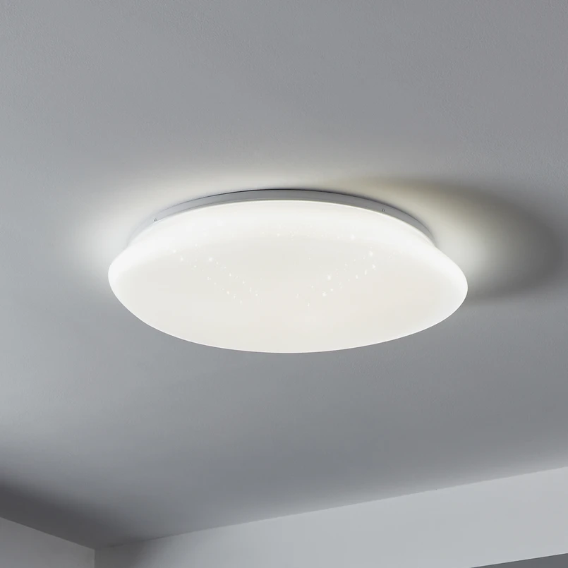 С кристален ефект - Sileras-Z LED осветление за таван, управлявано с приложение, RGBW Бялото Sileras-Z LED осветление за таван е оборудвано с пластмасов разсейвател с кристален ефект. Вътре са разположени интелигентни управляеми светодиоди, които могат да се димират и да се управляват с помощта на приложение, гласов асистент или подходящо дистанционно управление. В допълнение към цветната светлина могат да се избират бели тонове между топло бяло и дневно бяло, както и да се създават индивидуални сценарии за осветление. Светодиодната лампа за таван Sileras-Z може да се програмира и за определен период от време, например за планиране на симулация на присъствие за празниците или за използване на светлината като светлинен будилник. Функции / съвместимост: - управление с безплатното приложение AwoX HomeControl - съвместима със системи за интелигентен дом от други производители, които използват ZigBee 3.0 - възможна директна връзка с Amazon Echo и Google Home - увеличен обхват благодарение на допълнителната Bluetooth мрежа - съвместима с всички елементи от серията EGLO connect-c Bluetooth - управление с подходящо дистанционно управление дори без достъп до интернет (вж. аксесоарите)