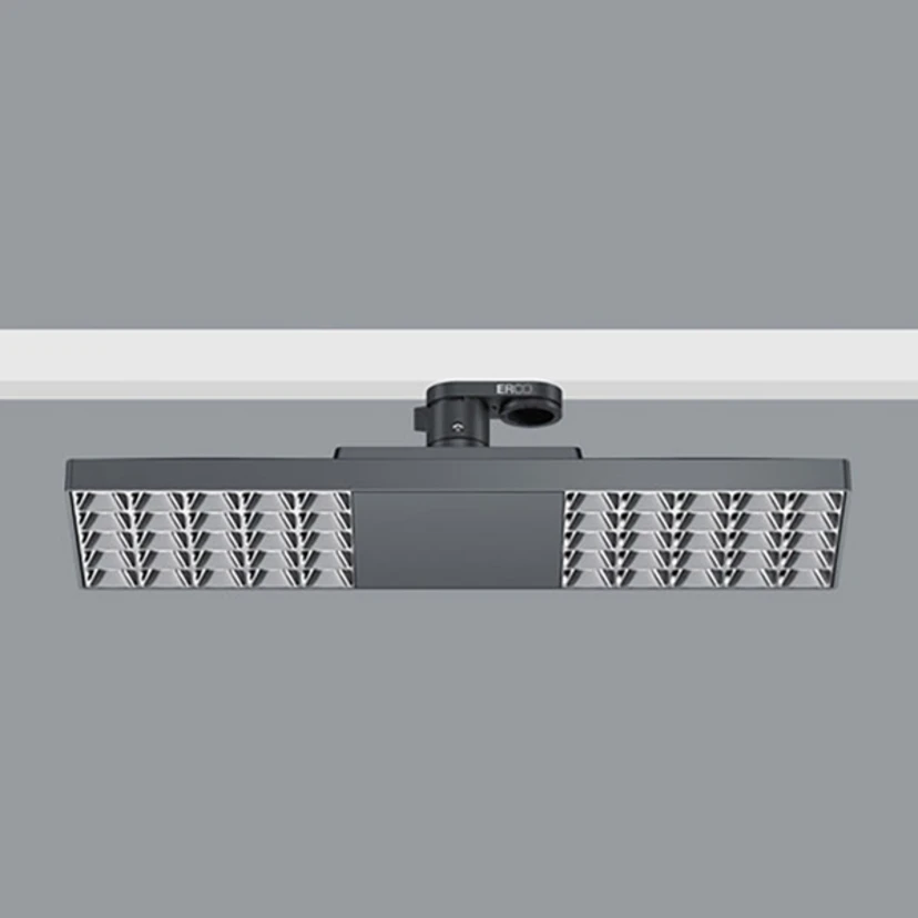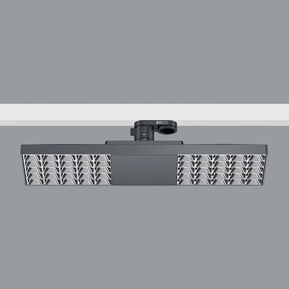 Jilly LED осветително тяло с жалузи от ERCO за управление чрез приложението Casambi за 230 V 3-фазен релсов път - 15 W LED, овално широко разпределение на светлината (83° / 61°) Jilly LED осветителното тяло с жалузи е гъвкав избор за осветяване на работни места в офиси. Специфичната система от лещи, изработени от оптичен полимер, и антирефлексната жалуза осигуряват не само добър контрол на заслепяването, но и широко, овално разпределение на светлината. В комбинация с въртящия се на 360° адаптер за релси светлината може да бъде идеално подравнена например за двойно работно място, разположено надлъжно или напречно на релсата. Jilly поддържа Bluetooth и може да бъде управлявана с помощта на приложението Casambi на таблет/смартфон - противоотразяваща решетка: пластмаса, алуминиево покритие, сребриста, силно огледална - с адаптер за релсов път за 3-фазен релсов път ERCO, 3-фазен релсов път Hi-trac и 1-фазен точков извод - съответстващ на стандартите контрол на отблясъците за VDU работни места: UGR < 19 - свързано натоварване: 18 W - с контролно устройство ERCO Casambi - връзка със смартфон/таблет чрез Bluetooth - превключваемо, димируемо и може да се интегрира в сцени чрез приложението Casambi (налично безплатно за iOS и Android) - може да се управлява с други продукти, съвместими с Casambi