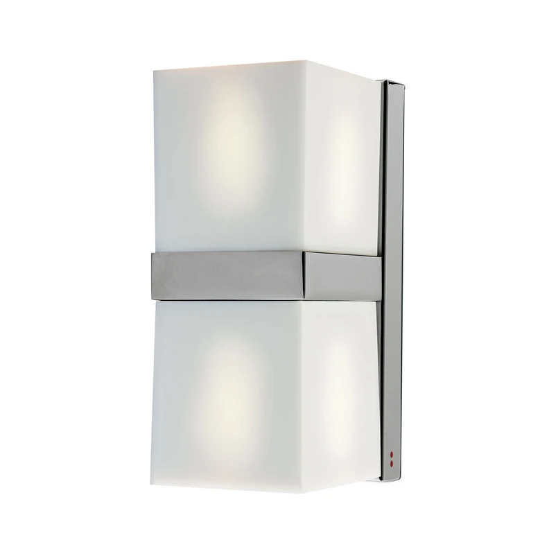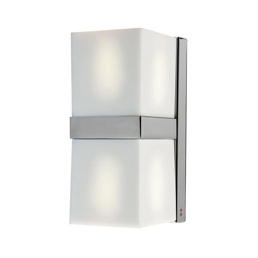 Модерна стенна лампа Cubetto за освежаващ акцент нагоре-надолу Cubetto е идеалният избор за добавяне на светлинен акцент в модерния интериор. Проектирана от Studio Pamio Design за първокласния производител Fabbian, стенната лампа е оборудвана с два стъклени абажура с форма на куб, които се поддържат от лъскава хромирана стенна конзола и са разделени в центъра. Абажурите са снабдени с отвори, във всеки от които е разположен рефлектор GU10, чиято светлина се излъчва нагоре или надолу. Стъклото вътре в отворите е матирано с помощта на пясъкоструен процес.
