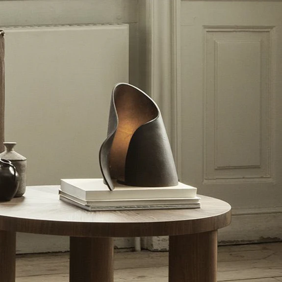 Изработен е от рециклиран алуминий: Настолна лампа Oyster с патинирана повърхност, с възможност за димиране Настолната лампа Oyster е изработена от рециклиран алуминий и се отличава с меки, плавни извивки, които придават на изделието декоративна, органична форма. Текстурата и повърхността на лампата предизвикват асоциации с черупките на стриди от плажа и - благодарение на процеса на леене - придават характерно, грубо изражение. Взаимодействието между органичната форма и грубата повърхност също създава впечатляващ контраст. Лампата "Стрида" разпръсква мека, уютна светлина и ще обогати дома като функционален, но и скулптурен елемент (включена е сменяема крушка E14).