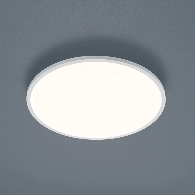 Кръгла LED лампа за таван Rack с особено плоска форма Лампата за таван Rack е проектирана като модерна LED лампа за таван, която се съчетава с много съвременни интериори. Тънката кръгла метална рамка обгръща сатиниран акрилен разсейвател, който осигурява хомогенен и слабо заслепяващ светлинен ефект. Топлите бели светодиоди осигуряват висококачествена светлина с отлично цветопредаване, така че декорът на помещението да се разгърне по чудесен начин. Ако е необходимо, богатият светлинен поток може да се затъмни, за да подхожда на уютни вечерни събирания. За тази цел е необходим фазов димер за преден или заден край.