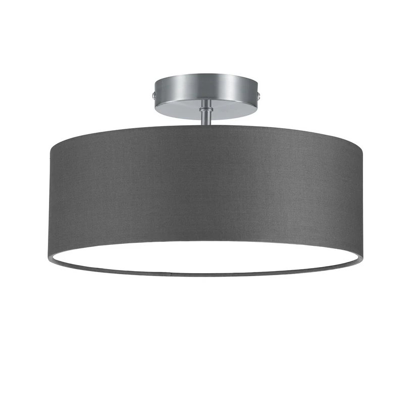 Елегантна лампа за таван Hotel с абажур от плат Благодарение на стилния си и ненатрапчив дизайн лампата за таван Hotel е подходяща за използване в частни помещения като спални, дневни или трапезарии, но също така се вписва добре в обществена среда и може да се използва като лампа за таван в ресторант или хотел, например. Със сивата си цветова гама Hotel може да се комбинира с множество стилове на обзавеждане. Светлината се отразява приятно от бялата вътрешност на абажура и се излъчва към пода.