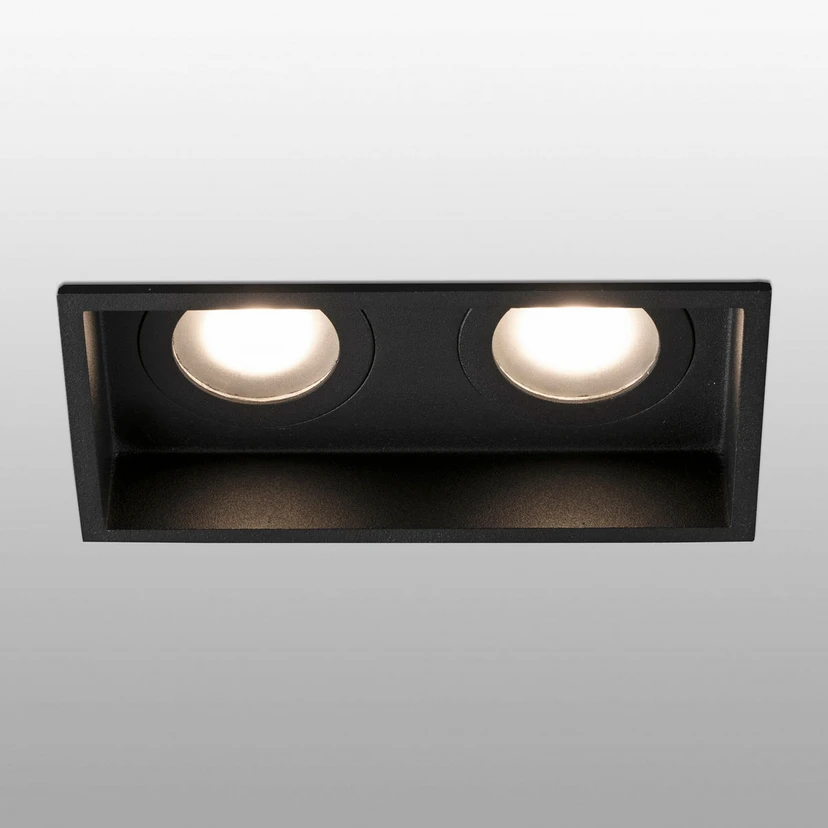 Двулампова лампа за вграждане Hyde със степен на защита IP44 Модерната лампа за вграждане Hyde е оборудвана с естетична алуминиева рамка. Двата използвани светлинни източника GU10, които не са включени в обхвата на доставката, се намират неподвижно в корпуса на осветителното тяло и светят целенасочено надолу. Това улеснява осигуряването на отлично осветление на определена зона в помещението. Благодарение на степента си на защита IP44, Hyde е идеален за банята, но може да се използва идеално и в коридори или кухни.