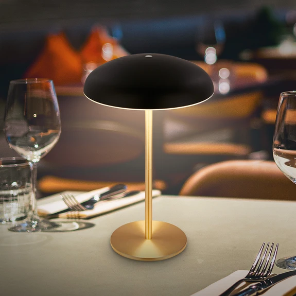 LED акумулаторна настолна лампа Brilo unplugged Caxa, черна/месинг