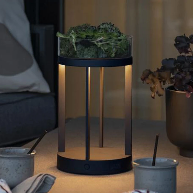 Акумулаторна LED декоративна лампа Chieti със стъклена купа за декорация LED декоративната лампа Chieti впечатлява с модерната си форма на фенер и висококачествения избор на материали. Тя е и много декоративна благодарение на специалния си вид, а вградените функции я правят истински универсален уред. Издръжливият алуминий създава идеалната основа за използване на открито, като позволява на лампата да издържа на всякакви метеорологични условия. Вградената акумулаторна батерия позволява да се използва далеч от електрическите контакти, така че светлината да създава приятна атмосфера по всяко време и навсякъде. Включва стъклена купа за съхранение на прибори или декорация - Зарежда се чрез USB кабел за зареждане - Димируемост (10-124 лм) - Температура на светлината се регулира на две степени (2700 К / 3000 К) - Включва стъклена купа за декорация