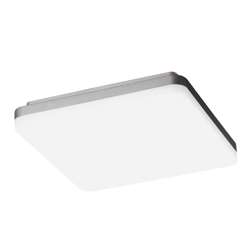 Квадратна светодиодна лампа за таван WL260 с алуминиева рамка за общо осветление Повърхностно монтираната светодиодна лампа WL270 съчетава семпъл, неутрален дизайн с широкообхватна, хомогенна светлина - идеална за общо осветление в модерни интериори - в коридори и стълбища, рецепции и чакални, стаи за почивка или работни помещения. В зависимост от областта на приложение мощността и цветовата температура могат да се регулират преди инсталирането на лампата за таван. Плоската рамка в сребристо-сиво покритие е изработена от алуминий. Светлината се излъчва през пластмасова оптика и капак, изработен от бял сатиниран PMMA, с което се постига особено равномерно и широко осветяване на околната среда - Включително преобразувател (включване/изключване) - Подходящ за монтаж на таван или на стена - Мощността (24 W / 18 W / 10 W) и цветовата температура (4000 K / 3000 K) могат да се настроят преди монтажа с помощта на вътрешни DIP превключватели - Контрол на заслепяването: UGR < 22 - Възможно е проходно окабеляване - Устойчивост на удар: IK05
