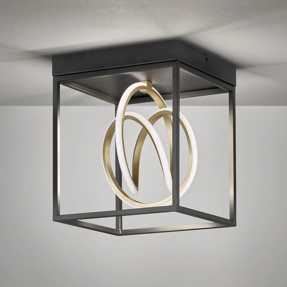 Светодиодна лампа за таван Gisi с дистанционно управление и функция CCT, с възможност за димиране Светодиодната лампа за таван Gisi предлага абсолютно гъвкаво осветление благодарение на функцията CCT и възможността за димиране. Правилното осветление може да се избере удобно с помощта на включеното в комплекта дистанционно управление. Светлината от светодиодите, които са монтирани в златиста спирала в матовочерната рамка зад силиконово покритие, може да се променя по цвят на светлината от топло бяло до дневна светлина, а също и да се димира непрекъснато.