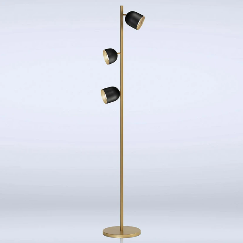 Впечатляваща подова лампа Dome LED с три абажура Благодарение на размерите си подовата лампа Dome LED е привлекателен източник на светлина в модерни и изискани дневни и кътове за отдих. Куполните абажури с различен размер са отместени в горната част на квадратната стойка. Тъй като абажурите могат да се въртят и завъртат, а освен това имат и оптични лещи, светлинният поток може да се контролира според нуждите. Преобладаващото златисто покритие осигурява висококачествен и елегантен външен вид.