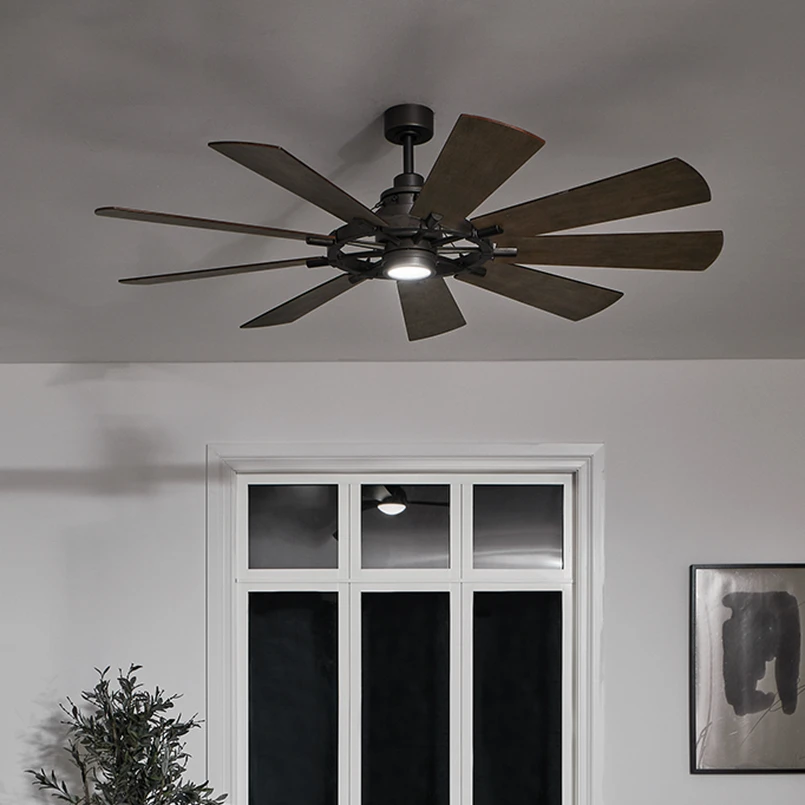 LED вентилатор за таван Gentry бял/орех тъмен