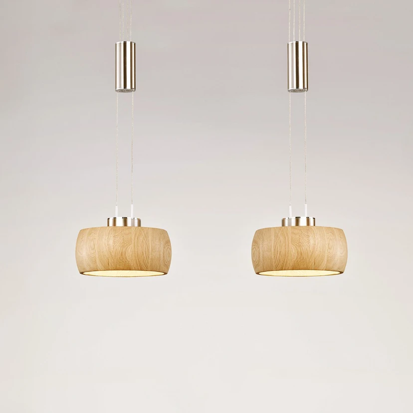 LED висяща лампа Shine-Wood, дъбово дърво/никел, 65 cm, 2 светлини.