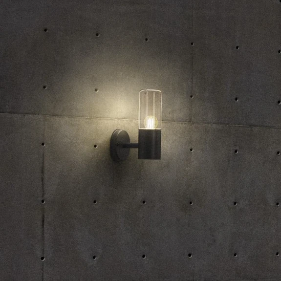 Endura Classic Цилиндрична външна стенна лампа Figo със сензор Външната стенна лампа Figo от серията Endura Classic има цилиндрична форма. Изработена от неръждаема стомана с тъмносиво покритие и разсейвател от прозрачно стъкло, тя надеждно осигурява светлина, когато е необходима, благодарение на вградената сензорна система. Осветителното тяло е оборудвано с фасунга E27, а светлинният източник може да се избира свободно, така че цветът и интензитетът на светлината да се адаптират към съответните изисквания. Данни за сензорната система: - Обхват на детектора за движение 6 м - Обхват на детектиране 110° - Оптимална височина на монтиране 2 м - Яркост на реакцията на сензора за дневна светлина < 30 лукса - Продължителност на осветяването, регулируема от 5 секунди до 6 минути