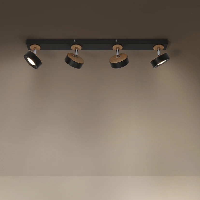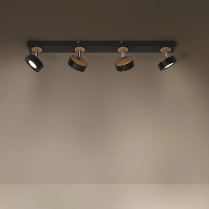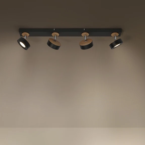 LEDVANCE LED таванна точка Pluto, стомана, дърво, 4 светлини, черно