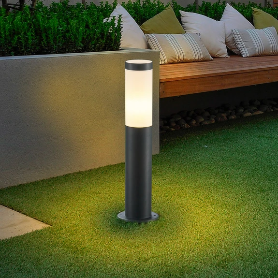 С тази лампа за външно осветление можете да допълните по отличен начин например вашата градина или веранда. Благодарение на красивия си външен вид, лампата за външно осветление хармонизира с почти всеки интериор и е акцент във всяка външна зона. Тя е с IP защита 44 и следователно е защитена от проникване на твърди чужди тела с диаметър по-голям от 1 mm и от пръски вода. Външната лампа с модерен дизайн осигурява приятна атмосфера с един източник на светлина. Тя се представя добре във всяко външно пространство и създава уютна атмосфера. Външната лампа е предназначена за осветителни тела с цокъл E27. Външната лампа от неръждаема стомана е в цвят антрацит. Тя се вписва ефективно във вашия външен интериор и може да служи не само като осветление, но и като прекрасен декоративен елемент. Нека се убедите в перфектното съчетание на външен вид и функционалност, което е отлично вградено в лампата.