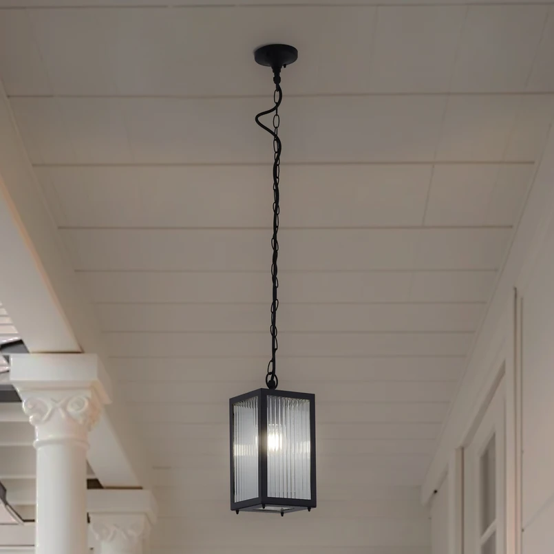Lindby Външна висяща лампа Bolgar, черна, метал, стъкло