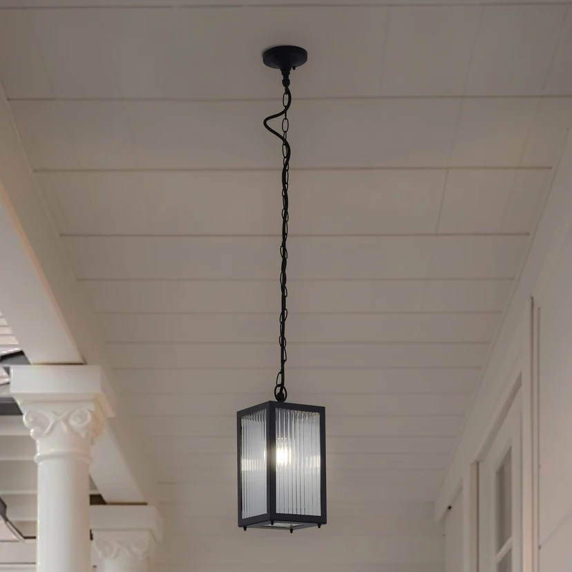 Външната висяща лампа Bolgar съчетава модерен дизайн с функционалност и създава атмосфера, която може да бъде както вдъхновяваща, така и успокояваща. Изработена от здрава желязо и прозрачно стъкло, тази лампа впечатлява с изчистената си елегантност в черно и прозрачно. IP защита IP44 гарантира, че осветителното тяло е надеждно и за външна употреба, особено на терасата, тъй като е защитено от пръски вода.