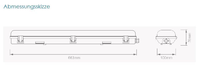 Лампата е изработена от поликарбонат и разполага със сменяема стъклена тръба T8 с 2A предпазител. Лампата е готова за включване и е подходяща за незабавна употреба. Предлага се в два различни размера.
