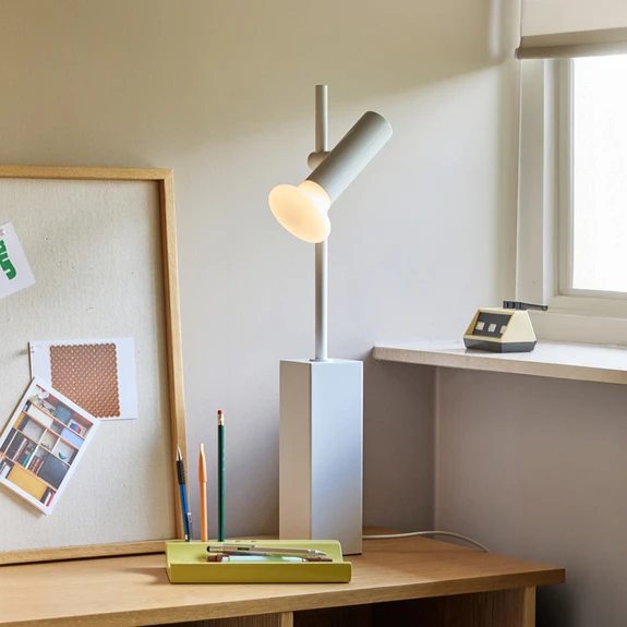 Настолната лампа SET съчетава модерен скандинавски дизайн с висококачествени материали. Комбинацията от светлосиви и бели елементи създава хармоничен външен вид, който се вписва идеално в стилна жилищна обстановка. С изчистените си форми и внимателно подбраните материали тя се превръща в акцент във всеки хол.