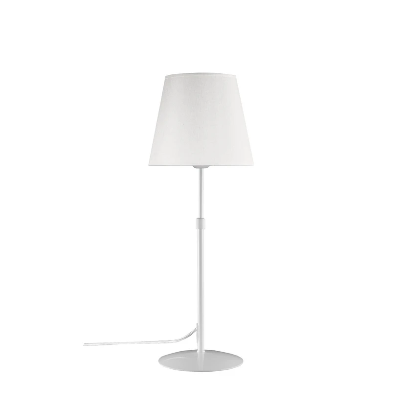 Удобно регулируема настолна лампа Store с абажур от плат Настолната лампа Store с метална рамка и абажур от плат има семпъл и елегантен вид. Благодарение на изчистения си дизайн тя може да се съчетае с много интериорни стилове. Независимо дали става въпрос за дневна върху скрин, странична масичка до седалка или спалня върху нощното шкафче - Store осигурява уютна допълнителна светлина на всяко място. Височината на настолната лампа Store може да се регулира удобно от 47 см до максимална височина от 59,5 см. Превключвателят за включване/изключване е интегриран в захранващия кабел.