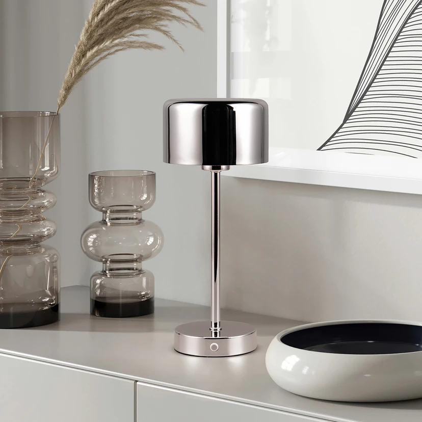 Настолна лампа Jeff LED с възможност за презареждане, цвят хром, височина
