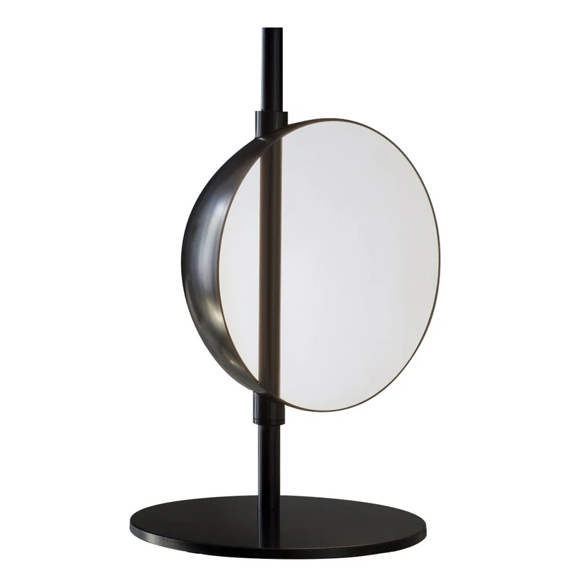 LED настолна лампа Superluna с подвижен, полукръгъл абажур LED настолната лампа Superluna има специален абажур - полусфера, която е отворена настрани и чиято вътрешна страна е по-светла от външната. Тя е визуално разделена от тънък прът, който е монтиран на кръглата основа. Топлите бели светодиоди, които са ориентирани към вътрешната страна на абажура, са интегрирани в пръчката. По този начин абажурът действа като своеобразен рефлектор и излъчва светлина на голяма площ навън, встрани. Освен това отразената светлина не заслепява и има непряк ефект и може да придаде на помещението подчертан светлинен ефект. Полусферата също може да се премества, което позволява индивидуално регулиране на светлинния лъч. Superluna е създадена от утвърдената италианска компания Oluce с помощта на вграден ключ. Дизайнерски осветителни тела се произвеждат там повече от 70 години. Oluce е една от най-старите активни дизайнерски компании в областта на осветлението от Италия. Те винаги се стремят да гарантират, че техните осветителни тела са търсени предмети за обзавеждане от всички поколения.