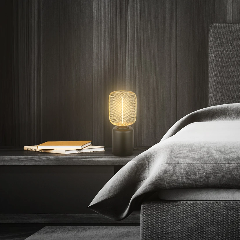 Настолната лампа Rist се представя в модерен дизайн: върху основата е поставен декоративно оформен абажур от телена мрежа, който придава на светлината от използваната лампа съвсем специален чар. С особено топлата си бяла светлина, тя създава уютна атмосфера, идеална за всекидневната, трапезарията и спалнята. Лампата впечатлява с изчистените си линии и се вписва безпроблемно в съвременния интериор.