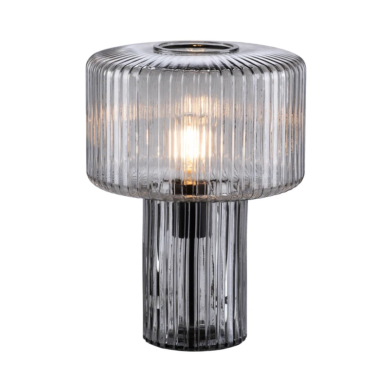 Paul Neuhaus Настолна лампа Fungus, димен цвят, стъкло, 34 cm