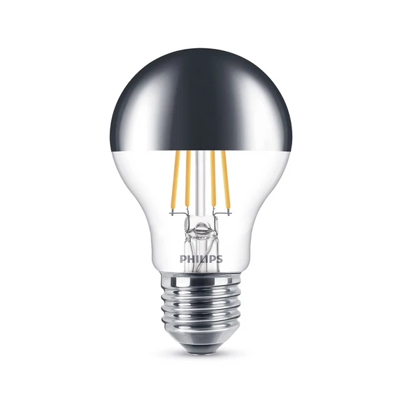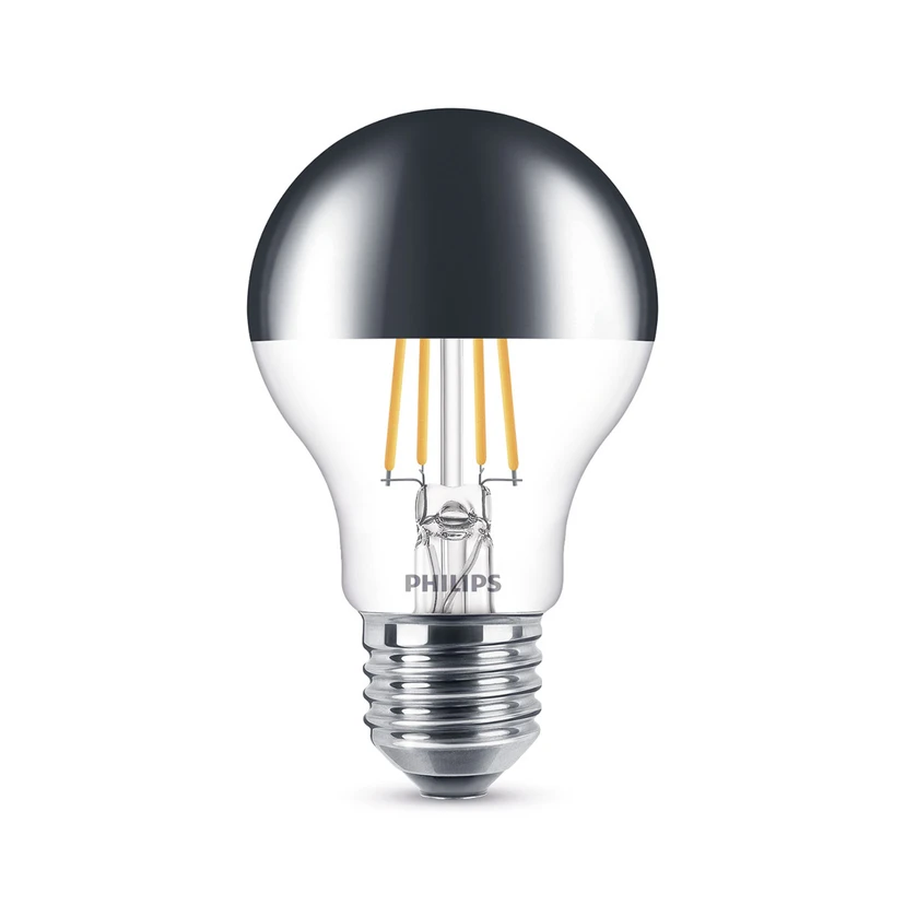 LED лампа E27 A60 7,5 W топло бяла с огледална глава Благодарение на огледалната глава тази LED лампа излъчва светлина без отблясъци в топло бял цвят на светлината (2700 К), който наподобява светлината на познатите лампи с нажежаема жичка. Тя е подходяща за всички отворени осветителни тела и предотвратява отблясъците, когато гледате директно към източника на светлина. Източникът на светлина може да се регулира безстепенно, така че яркостта може да се регулира безстепенно. Висококачествените материали и елегантният дизайн характеризират лампата, която отговаря на критериите за EyeComfort, разработени от Philips. Тя произвежда светлина, която е лесна за очите - с възможност за димиране