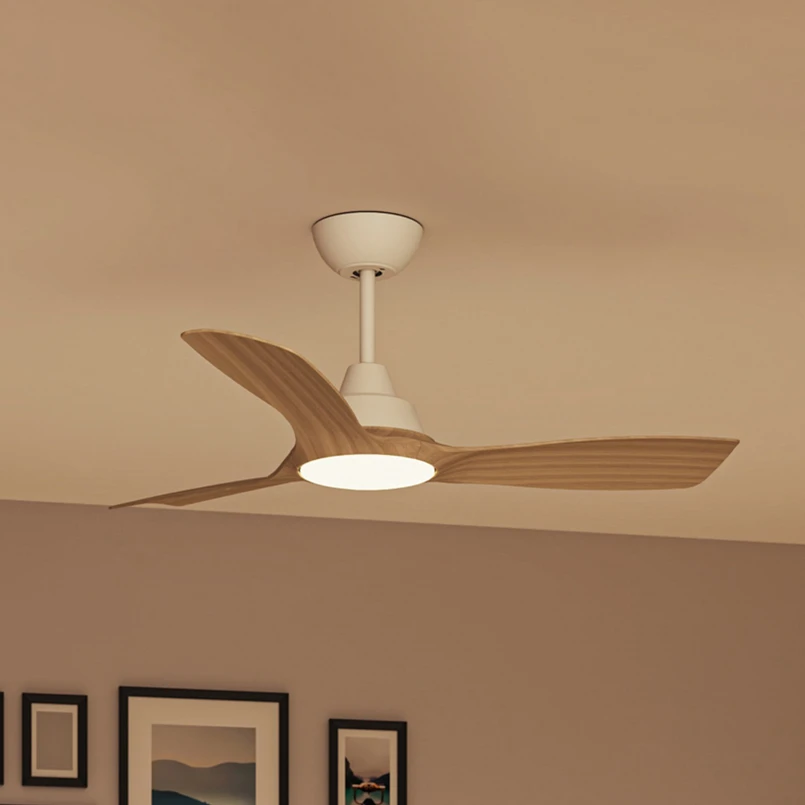 LED таванният вентилатор Olas с осветление комбинира регулируема, индивидуално настройваема светлина с комфорта на таванен вентилатор с широки перки за щедър въздушен поток. С функцията CCT и дистанционното управление можете лесно да създадете перфектното осветление във всяка стая.