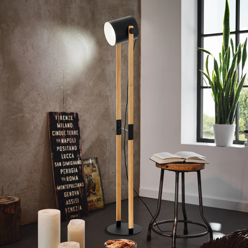 Подова лампа Hornwood, височина 140 cm, черно/кафяво, стомана