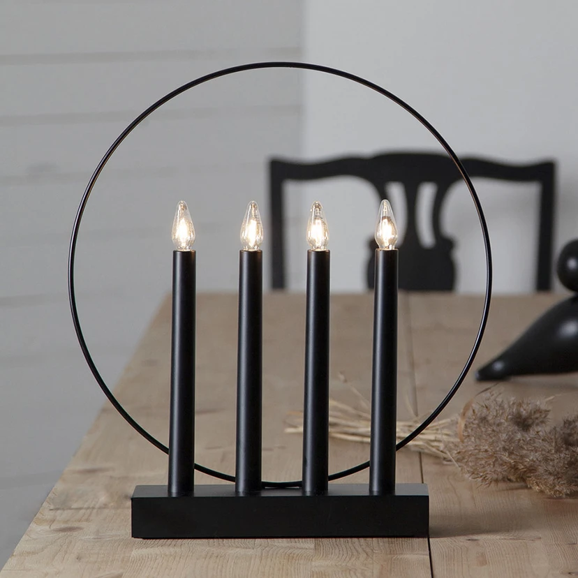 Полилей за прозорец Гланциран, пръстен, 4 светлини, черен