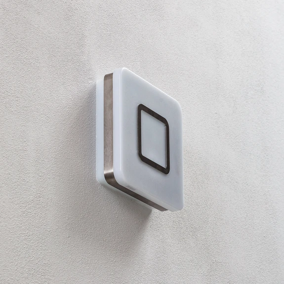 Стенната лампа RS M1 на Steinel има дискретен външен вид с бял пластмасов капак, допълнен с метална апликация, и предлага полезни и надеждни функции.
