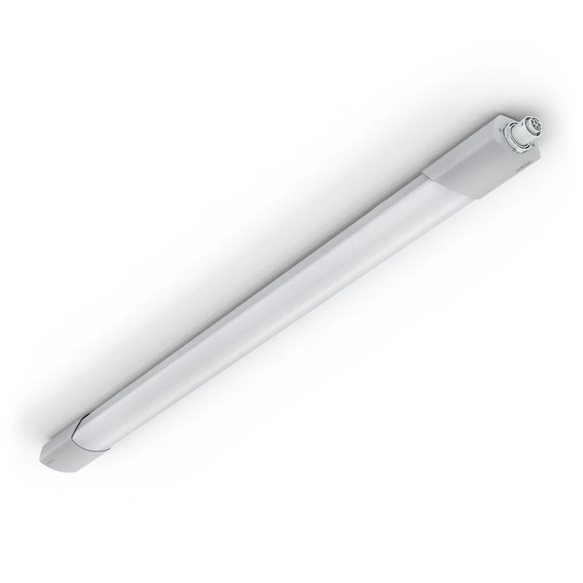 RS Pro 5150 SC EM LED влагоустойчива дифузерна лампа с функция за аварийна светлина и сензор, управляема чрез Bluetooth с помощта на приложение RS Pro 5150 SC EM LED влагоустойчива дифузерна лампа е оборудвана с акумулаторна батерия и функция за аварийна светлина. Светлината от серията Professional на Steinel е лесна за инсталиране и е особено подходяща за замяна на стари дифузерни светлини в гаражи, многоетажни паркинги и др. Тя е здрава, енергийно ефективна и функционална и може да се регулира чрез Bluetooth с помощта на приложението Steinel на смартфон. По време на работа може да се реализира напълно автономно управление с помощта на сензори за дневна светлина и движение, както и за разпознаване на присъствие - с акумулаторна батерия и функция за аварийно осветление с яркост 706 лумена за около 3 часа - с високочестотен сензор с ъгъл на разпознаване 360° - обхват на сензора макс. 10 метра - основна яркост, регулируема от 10 до 100 % - яркост на реагиране, регулируема от 2 до 2000 лукса - продължителност на светене, регулируема от 5 секунди до 60 минути - индекс на удароустойчивост IK07 - управление чрез приложение на Steinel през Bluetooth - всички продукти на Steinel с Bluetooth могат да се свързват в мрежа помежду си - без нежелано изключване благодарение на режима на присъствие - пасивен термоконтрол - подходящ за околна температура от - 20 до + 40 °C - клас на защита IP65 - препоръчителна височина на монтаж макс. 3,5 м