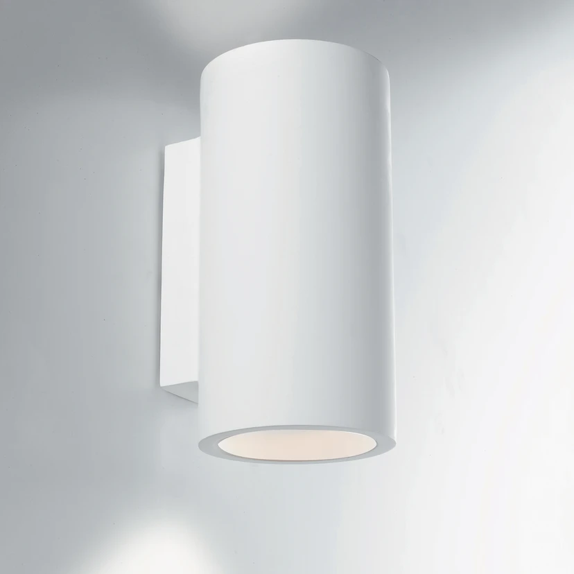 Офсетна, цилиндрична стенна лампа за мазилка Banjie Двата цокъла GU10 на стенната лампа за мазилка Banjie са разположени в горната и долната част на лампата. Цилиндричният абажур е прикрепен с кубовидна стенна скоба, която отделя лампата леко от стената. Цялото осветително тяло може да бъде боядисано. Това означава, че независимо какъв е или трябва да бъде цветът на стената, лампата също може да бъде боядисана и следователно винаги може да бъде проектирана така, че да съответства на стената. Двете гнезда могат да бъдат оборудвани с всички подходящи светлинни източници GU10.