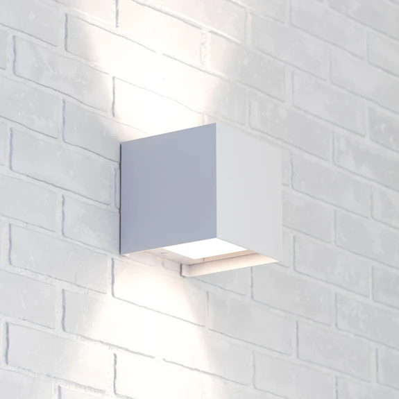 Кубична стенна лампа Zuza 2, горно и долно разпределение Стенната лампа Zuza 2, изработена от метал с проста кубична форма, е оборудвана с гнездо G9 в корпуса. Светлината от използвания светлинен източник се излъчва през отворите в горната и долната част, като четирите шарнирни крила позволяват индивидуално регулиране на ъгъла на излъчване.
