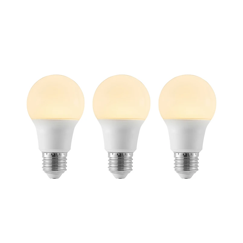 Светодиодна лампа E27 A60 8W 3000К опал, комплект от 3 броя