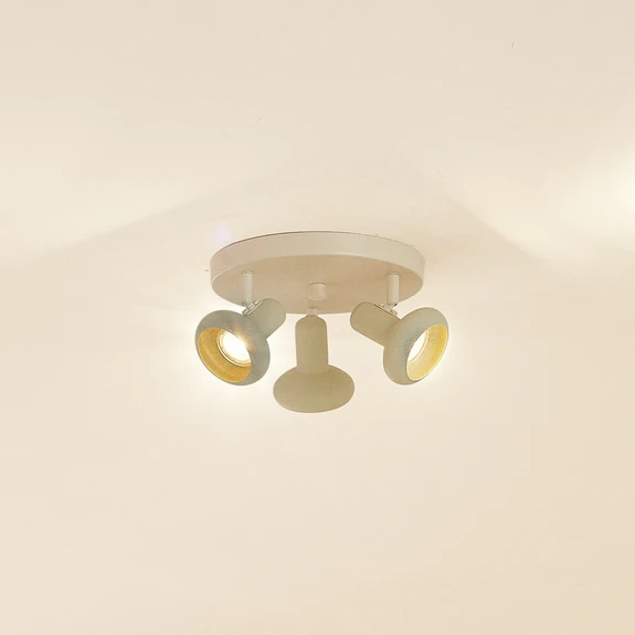 Нежна цветова комбинация - трисветови прожектор за таван Huby Класическият прожектор за таван Huby с три кръгли точки съчетава модерност с практично осветление. Дизайнът му с три лампи осигурява оптимално разпределение на светлината във всекидневни и коридори, тъй като прожекторите са регулируеми. Меката бежова и светлозелена цветова гама и използването на здраво желязо превръщат този прожектор в траен и естетичен елемент във всяка стая.