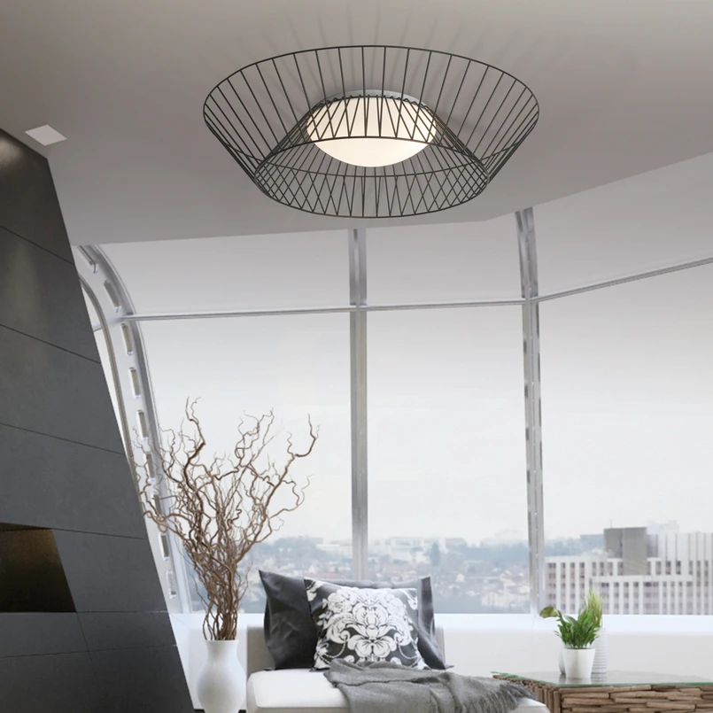 Таванна лампа 1546 с абажур в клетка, матово черно