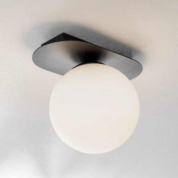 Таванна лампа Plaza, черна/опал, с една лампа