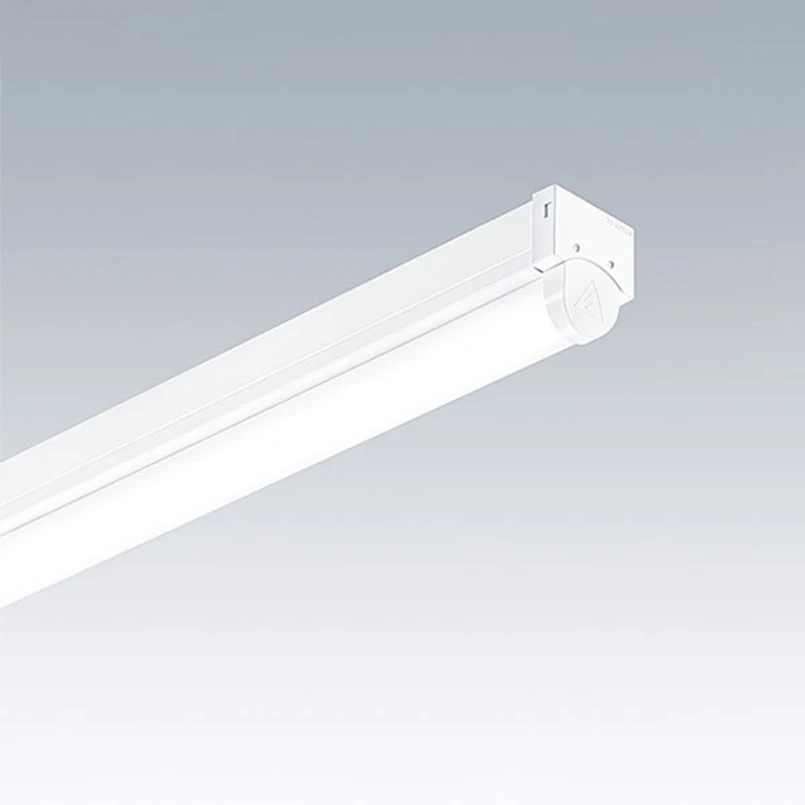 Осветително тяло PopPack LED - универсално и лесно за инсталиране Осветителното тяло PopPack LED е перфектният заместител 1:1 на луминесцентните осветителни тела и е просто и ефективно решение за нови инсталации. То осигурява широко и равномерно осветление за офиси, кухненски и складови помещения, сервизни помещения или стълбища, например. Белият му корпус е изработен от стомана с покритие, а разсейвателят - от текстуриран опалов акрил. LED светлинната лента е изключително лесна за инсталиране благодарение на системата за щракване и пробитите слотове на гърба за лесно подравняване - Разпределение на светлината: 83 % надолу, 17 % нагоре - Толеранс на разположение на цветовете (първоначален MacAdam): 3 - Степен на защита: IP20 - Устойчивост на удар: IK03 - Температура на околната среда: - 20 до + 25 °C - Електрическо свързване: Свързваща клема, 3 x 2 x 2,5 mm² Комплектът за окачване, който може да се поръча като аксесоар, може да се използва за превръщане на светлинната лента в окачено осветително тяло.